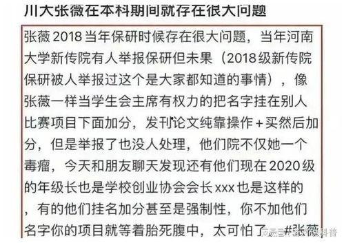 首先,让我们来回顾一下这个视频的主要内容。视频中,一位自称是张薇同学的人士,声称揭露了张薇保研的内幕。据视频所述,张薇在大学期间成绩并不突出,但她却通过一些不正当手段,成功保研到了一所知名高校。视频中还提到了一些具体的细节,比如张薇与导师的关系、她在保研过程中的表现等。